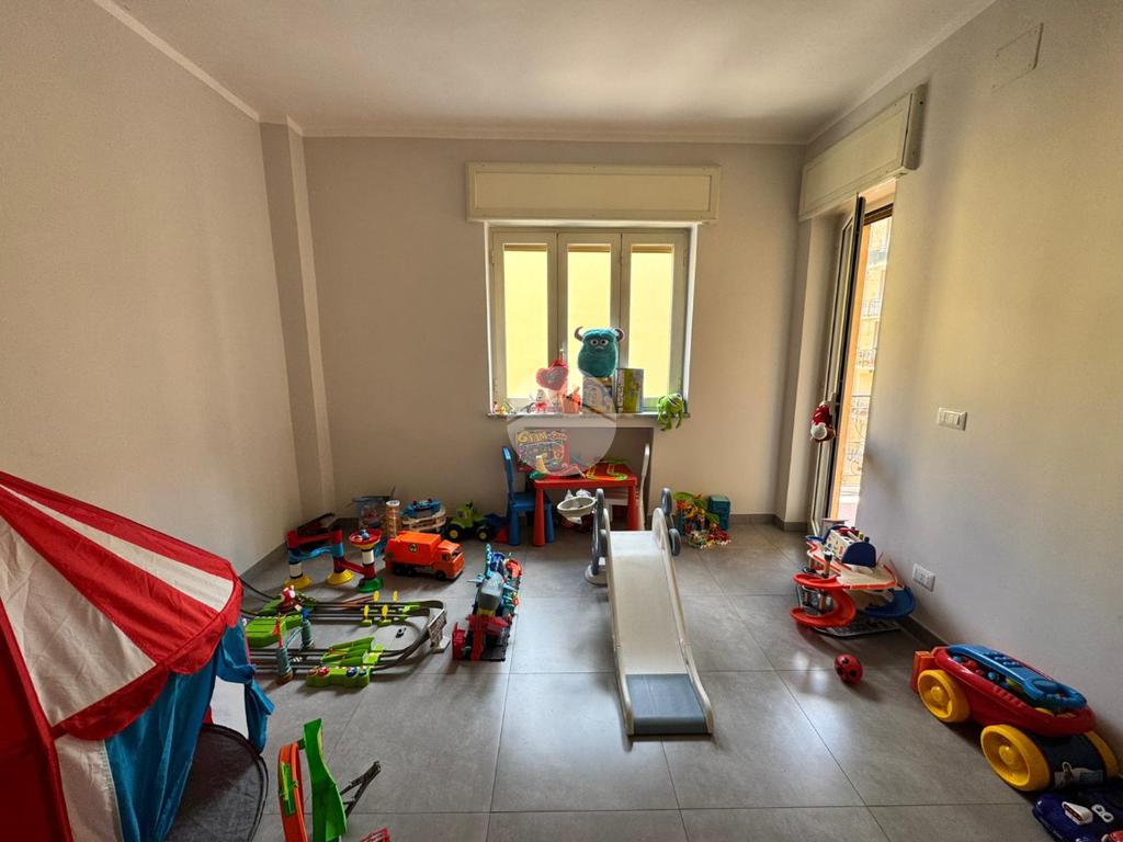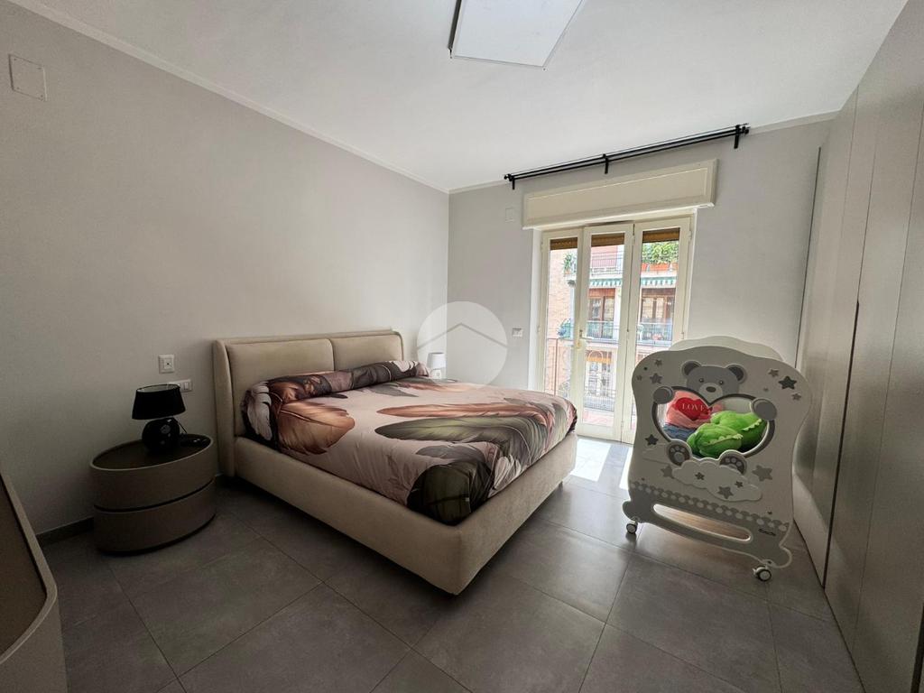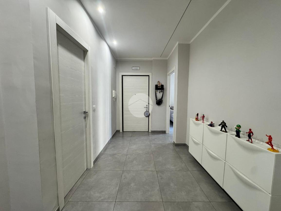 Dispone di due balconi ai lati opposti, che garantiscono un’ottima esposizione e ventilazione naturale; uno dei quali è ampio e angolare, ideale per godere di maggiore spazio esterno. La soluzione internamente è composta da ingresso in ampio disimpegno, salone, cucina separata, due bagni con cabina doccia, lavanderia, camera matrimoniale e cameretta. Soluzione ideale per chi cerca comfort, modernità e una posizione strategica